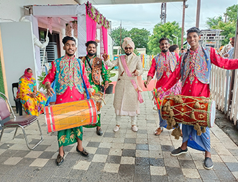 MJ Dholi’s Team is a professional and well-dressed performing group based in Vandurga Temple , Anegundi Road Bejai Manglore, known for adding energy and excitement to every celebration. With years of experience in the entertainment industry, the team specializes in all types of dhol performances, wedding bands, horses and raths, safa and pagadi services, and traditional instruments like langa, nagada, and shehnai.